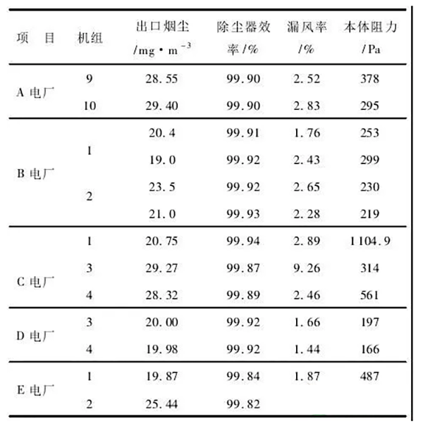 表1燃煤電廠除塵器改造前設(shè)備信息